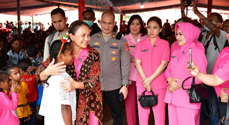 maiwanews – Ketua Umum Bhayangkari Pusat, Juliati Sigit Prabowo, hari Sabtu, 28 Desember 2024, merayakan Natal bersama para korban erupsi Gunung Lewotobi di Desa Kobasoma, Kecamatan Titehena, Kabupaten Flores Timur, Nusa Tenggara Timur.
