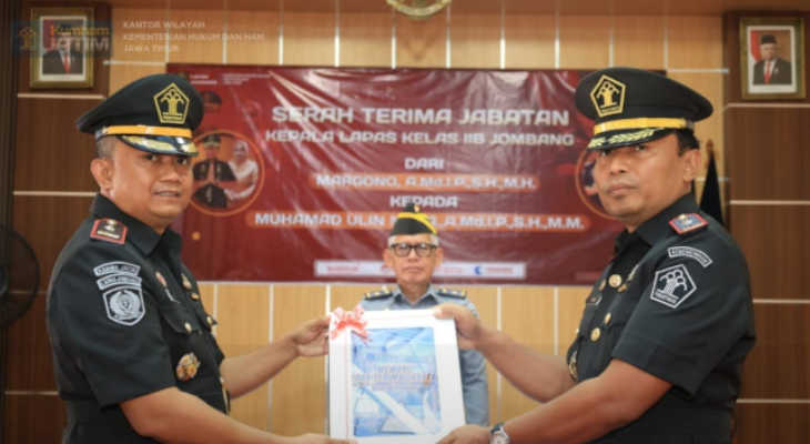 maiwanews – Kemenkumham Jatim menggelar serah terima jabatan piminan tertiggi Lapas Kelas IIB Jombang, dari pejabat lama yaitu Margono kepada pejabat baru Muhamad Ulin Nuha, di aula lapas Jombang, Selasa (03/09/2024).