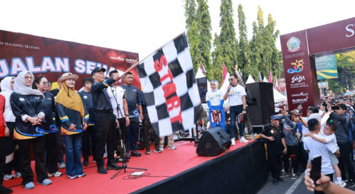 “Provinsi bersama kabupaten/kota bergerak serentak olahraga pagi jalan sehat dalam rangka HUT Sulsel 355 dan memecahkan rekor muri. Ini peserta terbanyak seluruh Indonesia lebih 534 ribu peserta,” kata Zudan pada sela-sela acara.