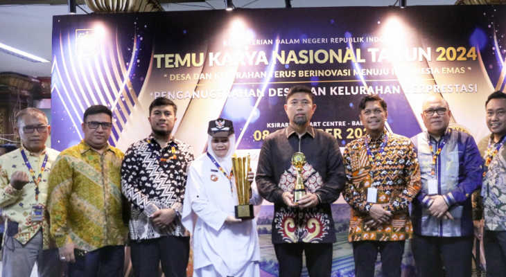 Penghargaan tersebut diserahkan langsung oleh Menteri Dalam Negeri Tito Karnavian bersama Direktur Jenderal Bina Pemerintahan Desa Kemendagri, La Ode Ahmad P. Bolombo, dalam acara Temu Karya dan Penghargaan Lomba Desa/Kelurahan Berprestasi yang berlangsung di Gedung Ksirarnawa, Denpasar, Bali, pada Selasa (8/10/2024).