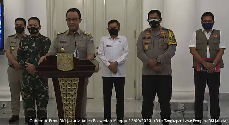 Pada konferensi pers Minggu 13 September, Gubernur Daerah Khusus Ibu Kota (DKI) Jakarta Anies Baswedan mengatakan pihaknya terus memastikan bahwa semua langkah diambil untuk memastikan keselamatan warga Jakarta dan semua yang berkegiatan di Jakarta.