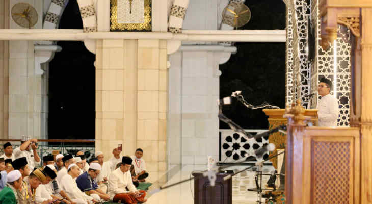 maiwanews — Wali Kota Makassar, Moh. Ramdhan Pomanto menghadiri peringatan Isra Miraj Nabi Besar Muhammad SAW 1446 H di Masjid Raya Makassar, Sabtu (1/02/2025).