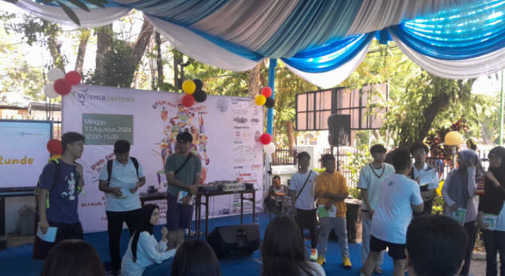 “Kemudian untuk program di depan sekitar halaman Wisma Jerman. Kami mengadakan program sendiri, ada beberapa games memperkenalkan bahasa Jerman yang playful, dan berhadiah menarik,” sambung Mike.